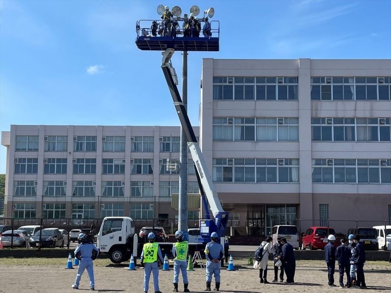 高所作業車を使用した照明灯のランプ交換等の体験学習会を実施しました。