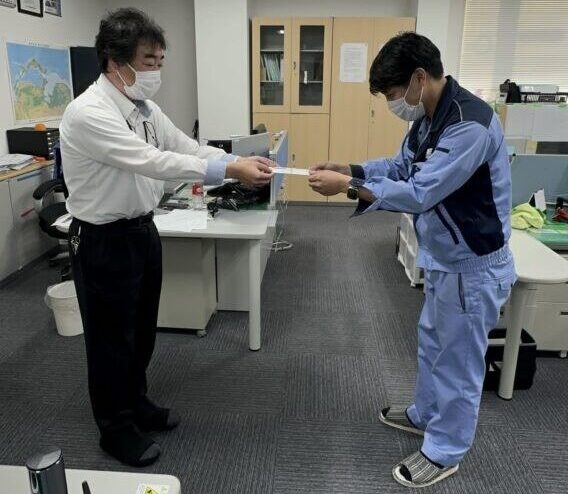 今年は25年勤続表彰が2名、15年勤続表彰が3名、