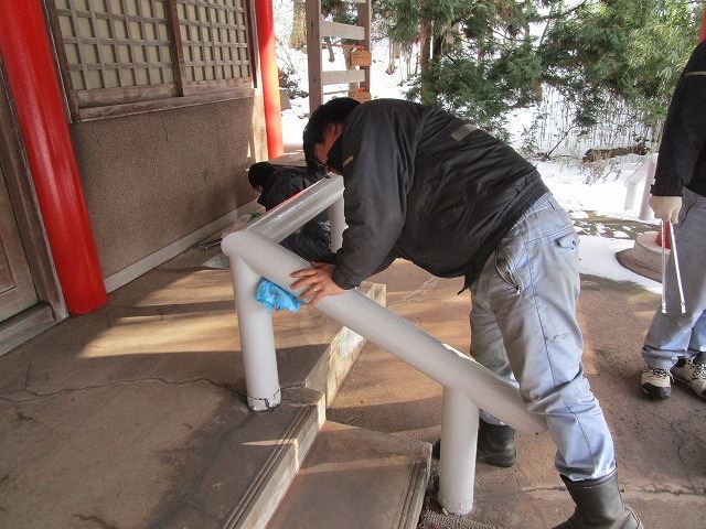 境内の照明器具の点検清掃と窓拭き、賽銭箱・手すり等の清掃作業及び