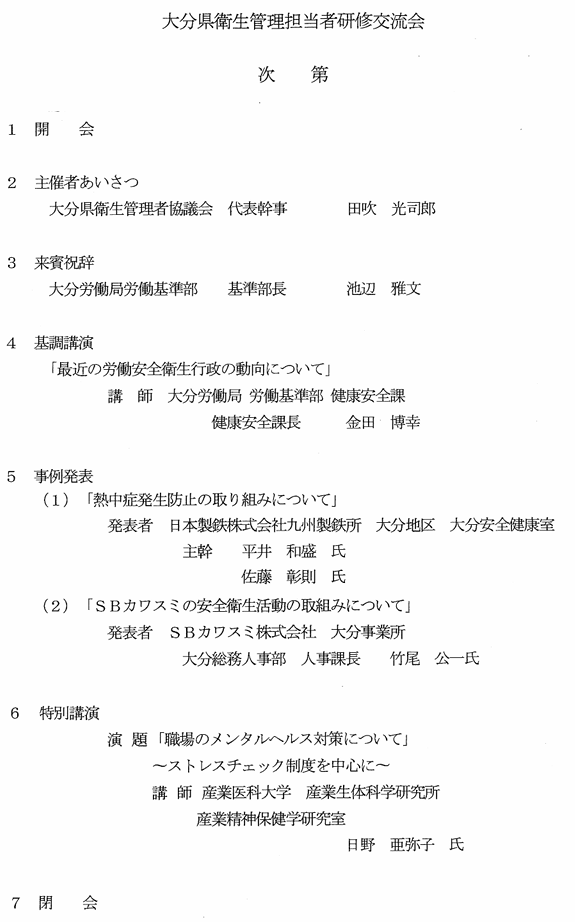 〇主 催 大分県労働基準協会、大分県衛生管理者協議会、大分産業保健総合支援センター