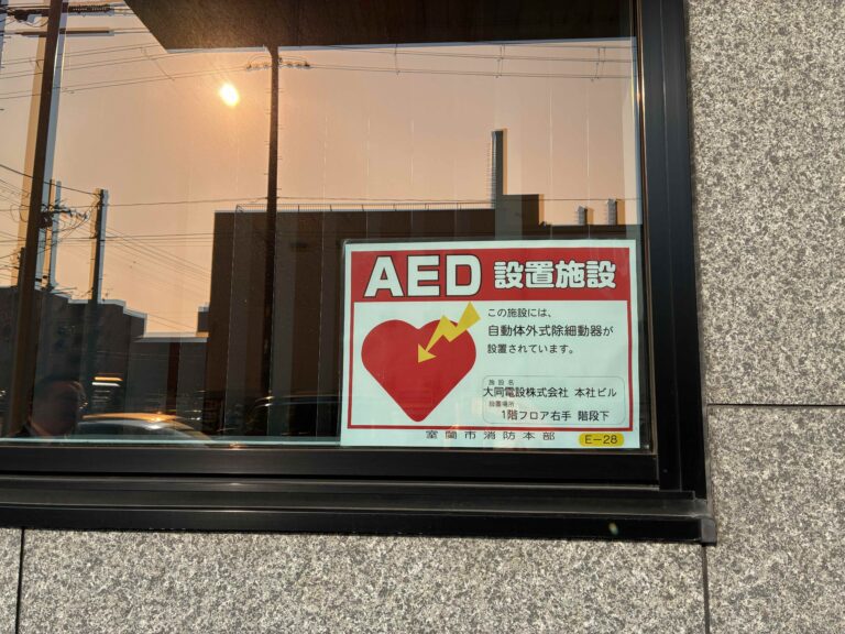 尚、当社休業時間の際は他のAED設置施設をご利用ください。