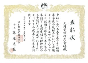 第161回JK発表会 2025年12月4日 2025年11月28日 第161回JK発表会が開催されました。 今回の発表に先立ち「JK活動の平準化の取組み」にて9月末までに 年間目標の50%以上を達成したので表彰状をいただきました。 今回は5社が発表いたしました。 発表テーマ「溶接時の火災防止対策~電気工事~」 サークル名「Core」 室蘭支店整備課 渡辺係長が発表をいたしました。 結果 銀賞でした。