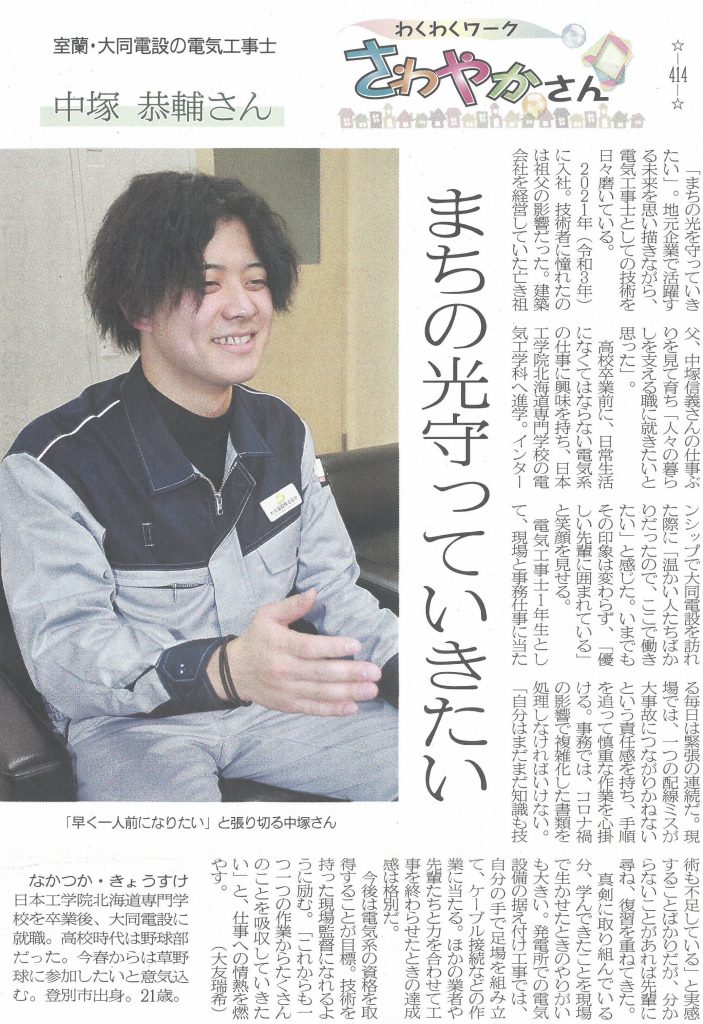 室蘭支店 中塚さんが室蘭民報に掲載されました
